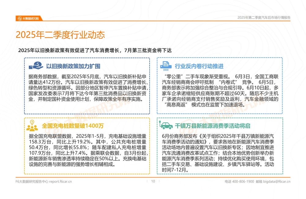 ▶ 2025年二季度,新能源汽车进厂台次占比逼近10%,较去年同期提升2.6个百分点,市场渗透持续加深。