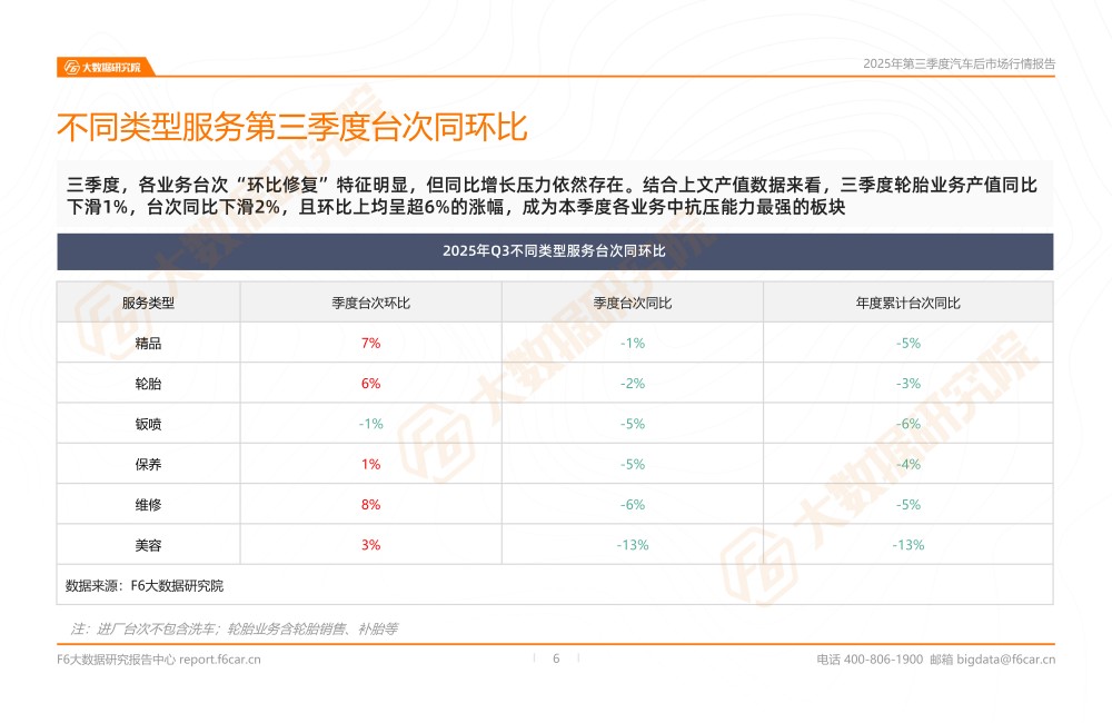 2025年截至三季度,后市场累计产值及进厂台次较去年同期均出现5%的下滑,两大核心指标表现承压。