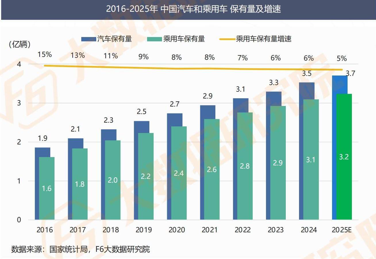 2024年中国汽车保有量已攀升至3.5亿辆,2025年底,预计将突破3.7亿辆,(其中,乘用车有望达3.2亿辆)。