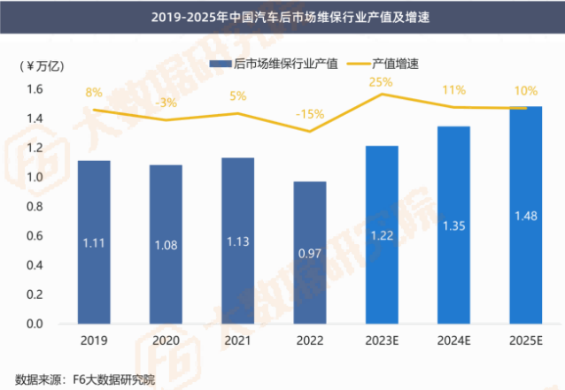 2023年中国汽车后市场维保行业产值达1.2万亿,至2025年将保持10%以上增速