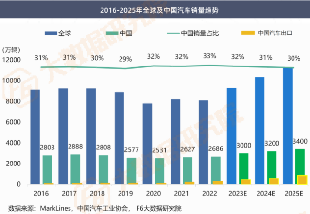 2023年中国汽车产业在出口强劲增长、汽车促消费政策等利好因素影响下,预计销量在3000万辆左右,创历史新高。