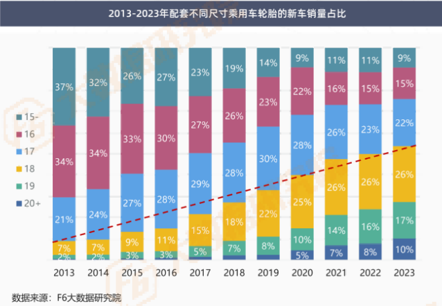 2023年配套18寸以上乘用车轮胎的新车占比已超50%